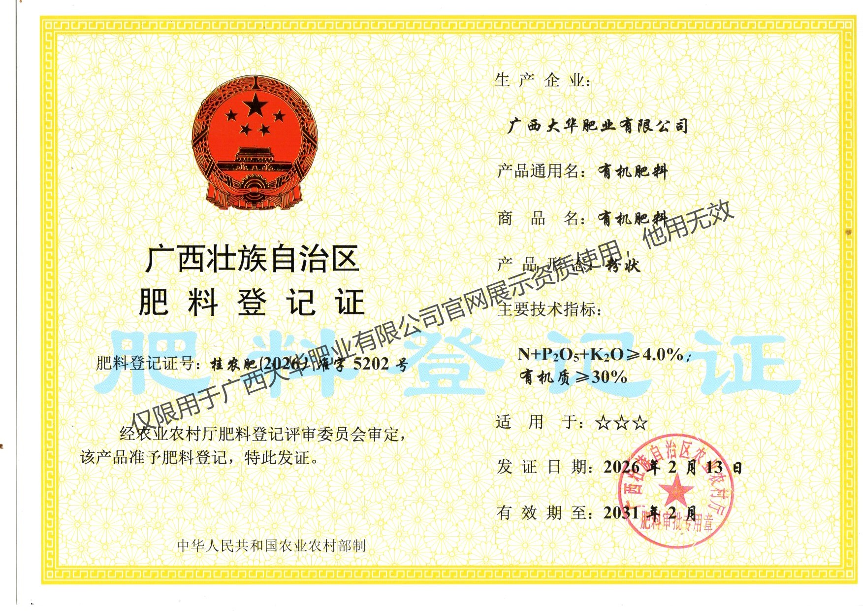 有机肥料4% 粉状 2031.02到期
